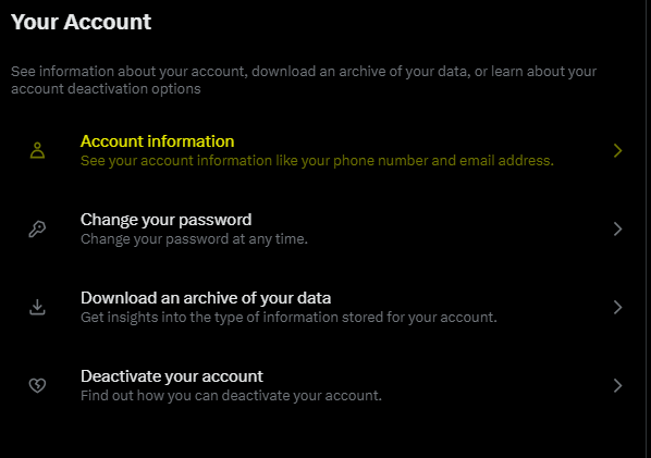 Step 4: Click on “account information”, the first one in the list.