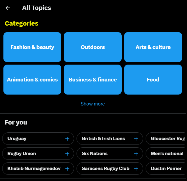 Step 7: Then you’ll see all the topics that can be followed by your account, personalized for you, or by categories.