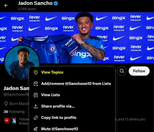Step 2: Choose one trending in a category, for example “Sancho” on sports window
