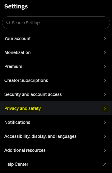 Step 2: Go to “privacy and safety” at the bottom.