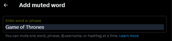 Step 7: Write the word you want to mute, “Game of Thrones” for example not to suffer any spoilers. 😂