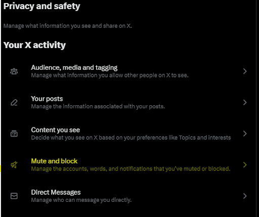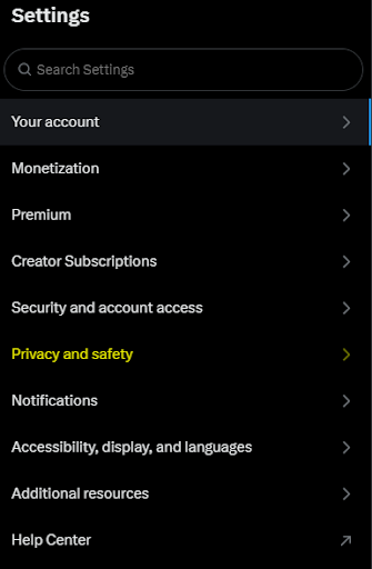 Step 3: Once you are there select the “privacy and safety” option on the settings